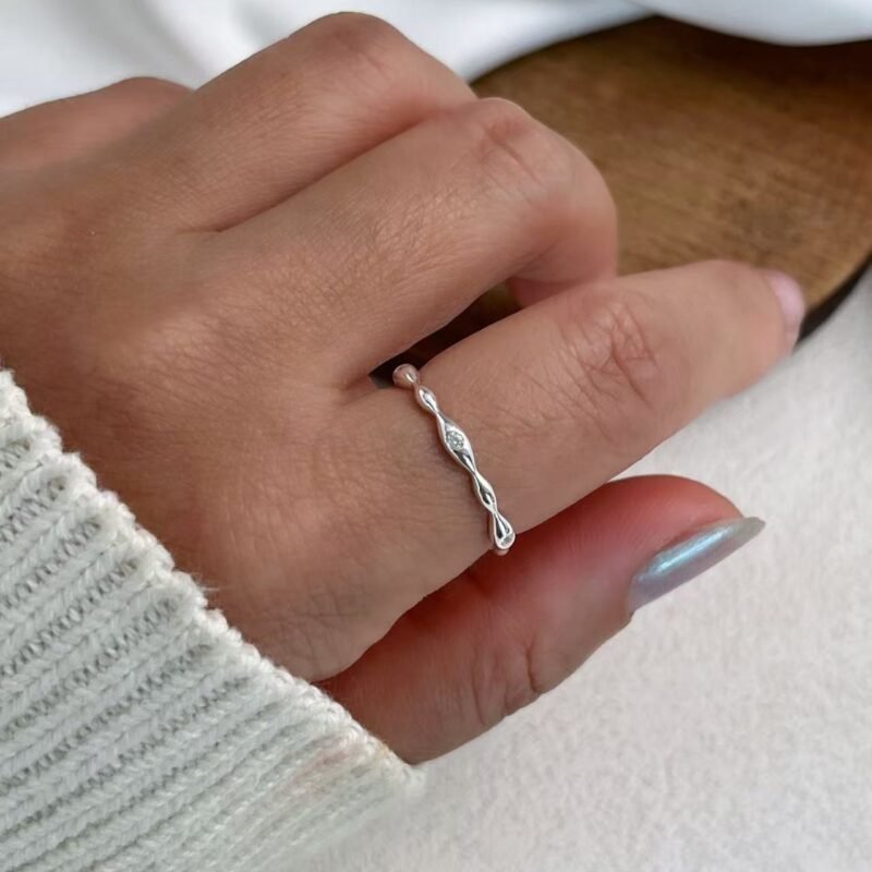 Anillo de Plata de Ley 925 Ondulado con Circonitas | Diseño Minimalista y Ajustable