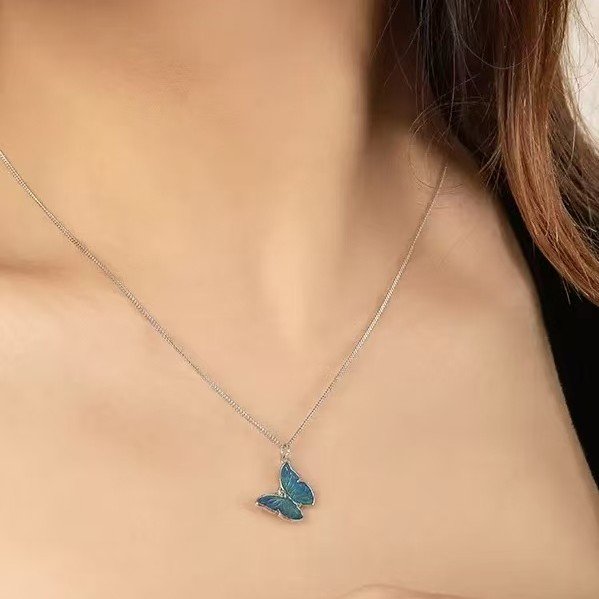Collar con Colgante de Mariposa Monarca Azul en Plata 925 | Joyería Elegante para Mujer