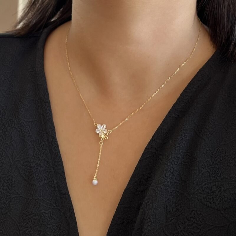 Gargantilla de Plata 925 Bañada en Oro | Colgante de Flor y Perla Natural con Estilo Minimalista