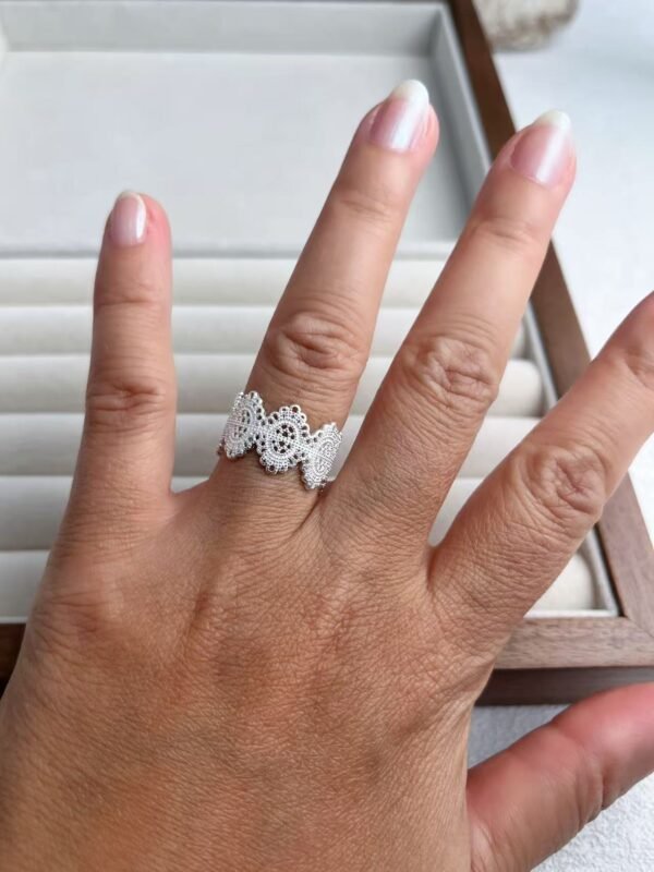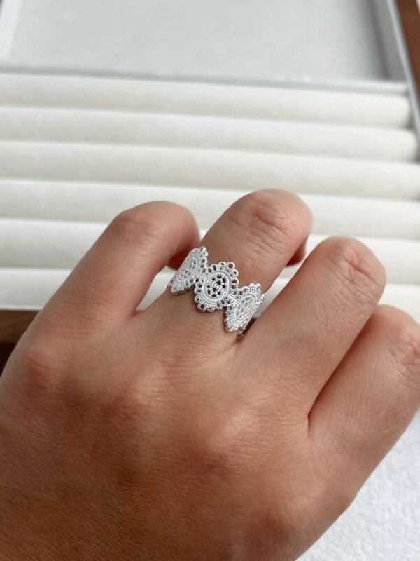 Anillo Ancho de Encaje Barroco en Plata S925, Diseño Calado Vintage Artístico
