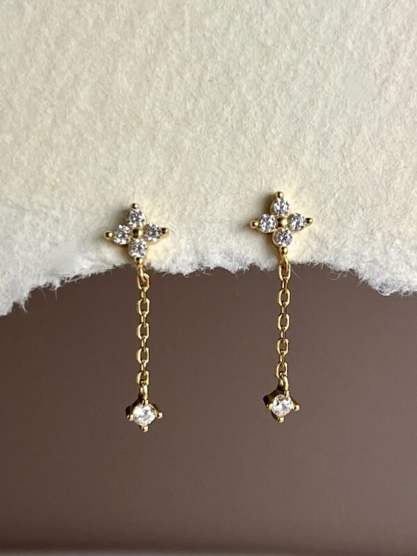 Pendientes de Trébol en Plata de Ley 925 con Baño de Oro – Aretes de Cadena con Circonitas Brillantes