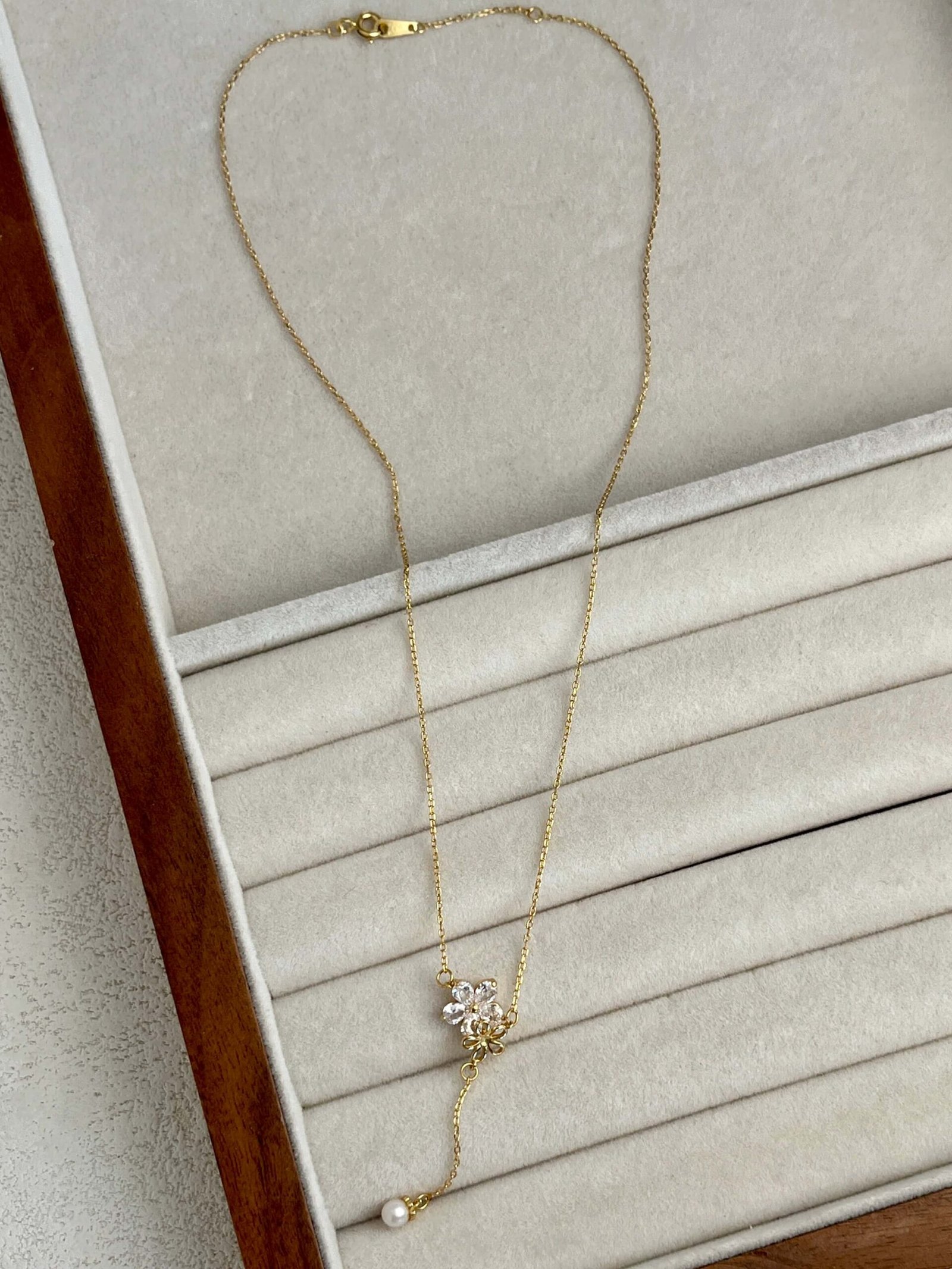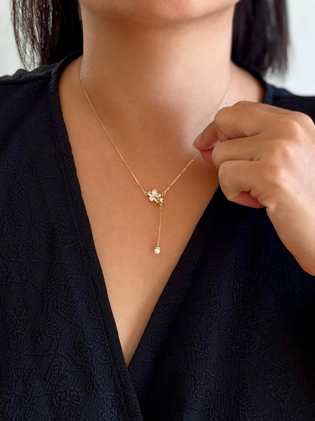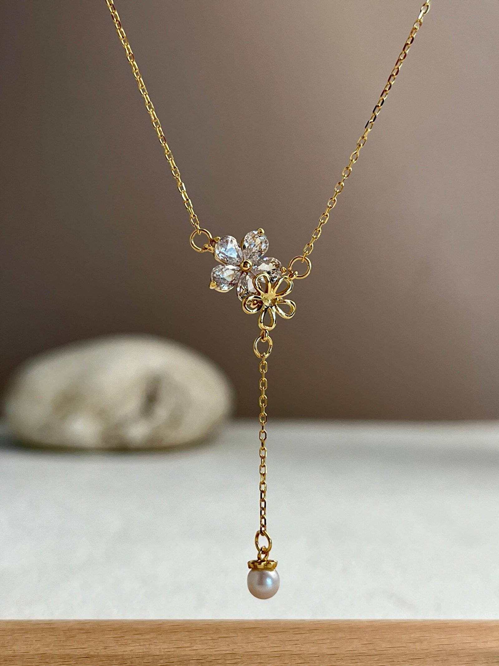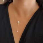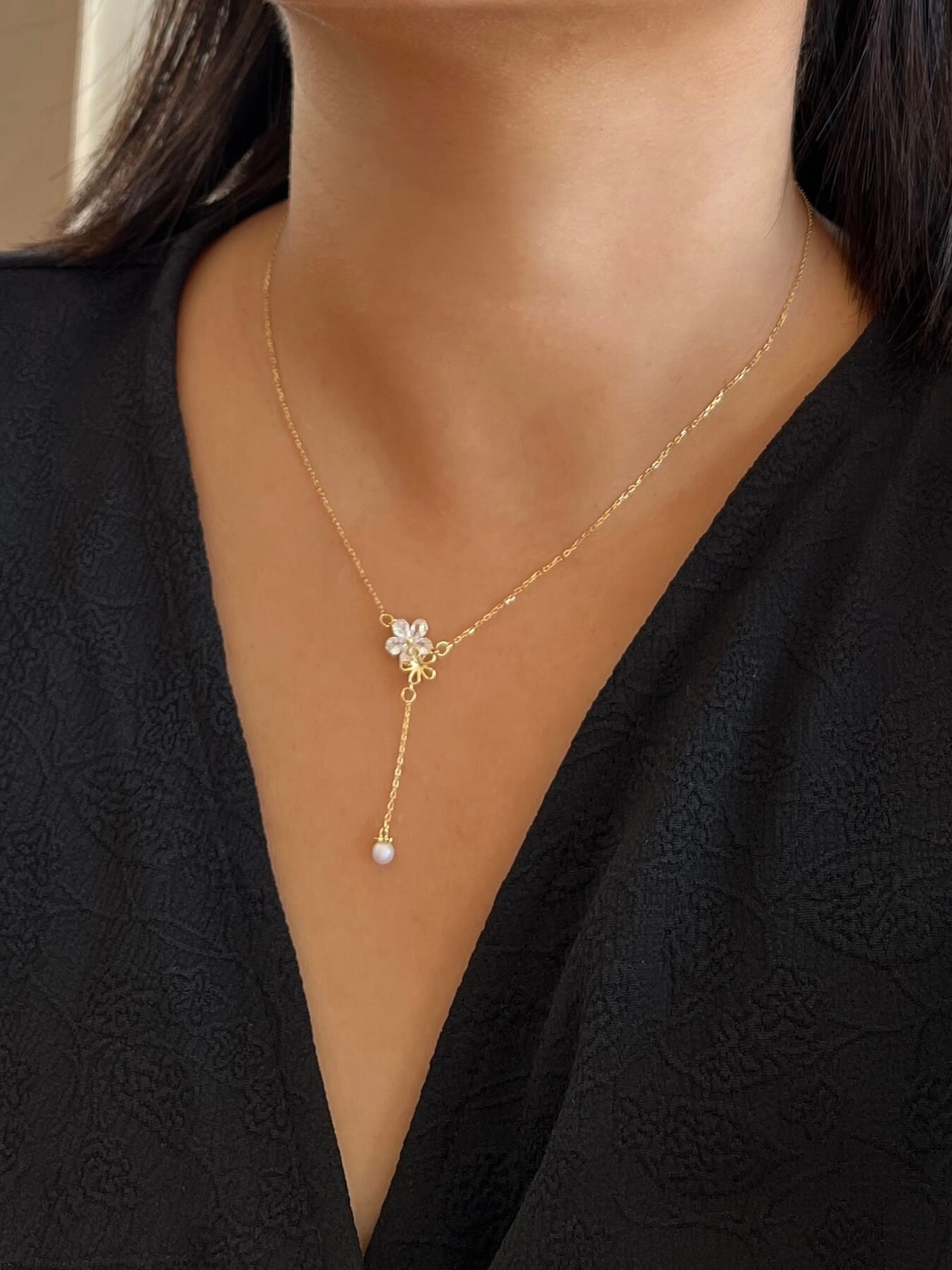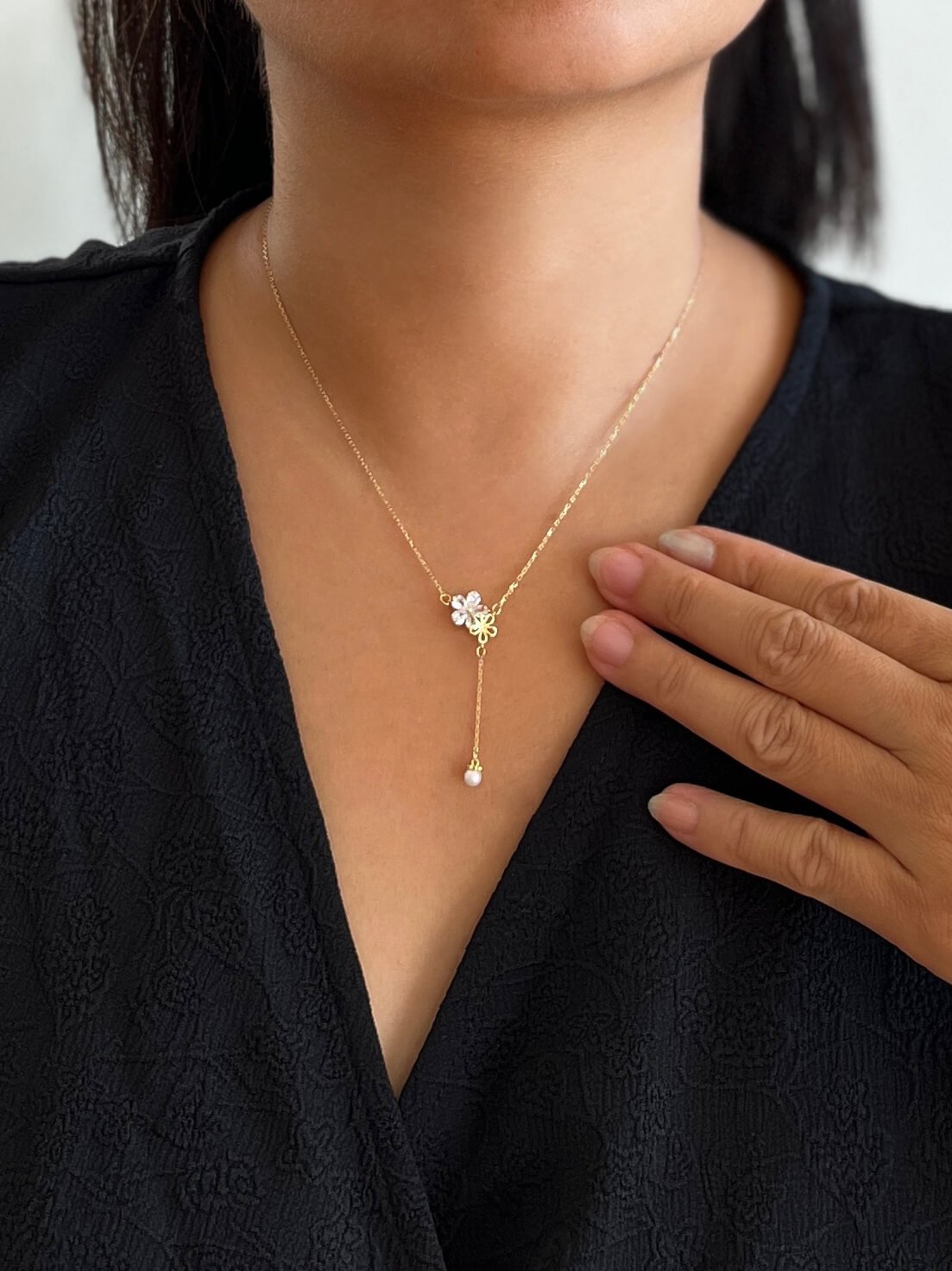 Der Y-förmige Anhänger endet mit einer zarten Perle und verleiht dem Dekolleté eine fließende Bewegung. Gefertigt aus 925er Sterlingsilber mit einer exquisiten Vergoldung, ist diese Halskette eine Hommage an Weiblichkeit, Reinheit und Neubeginn.
