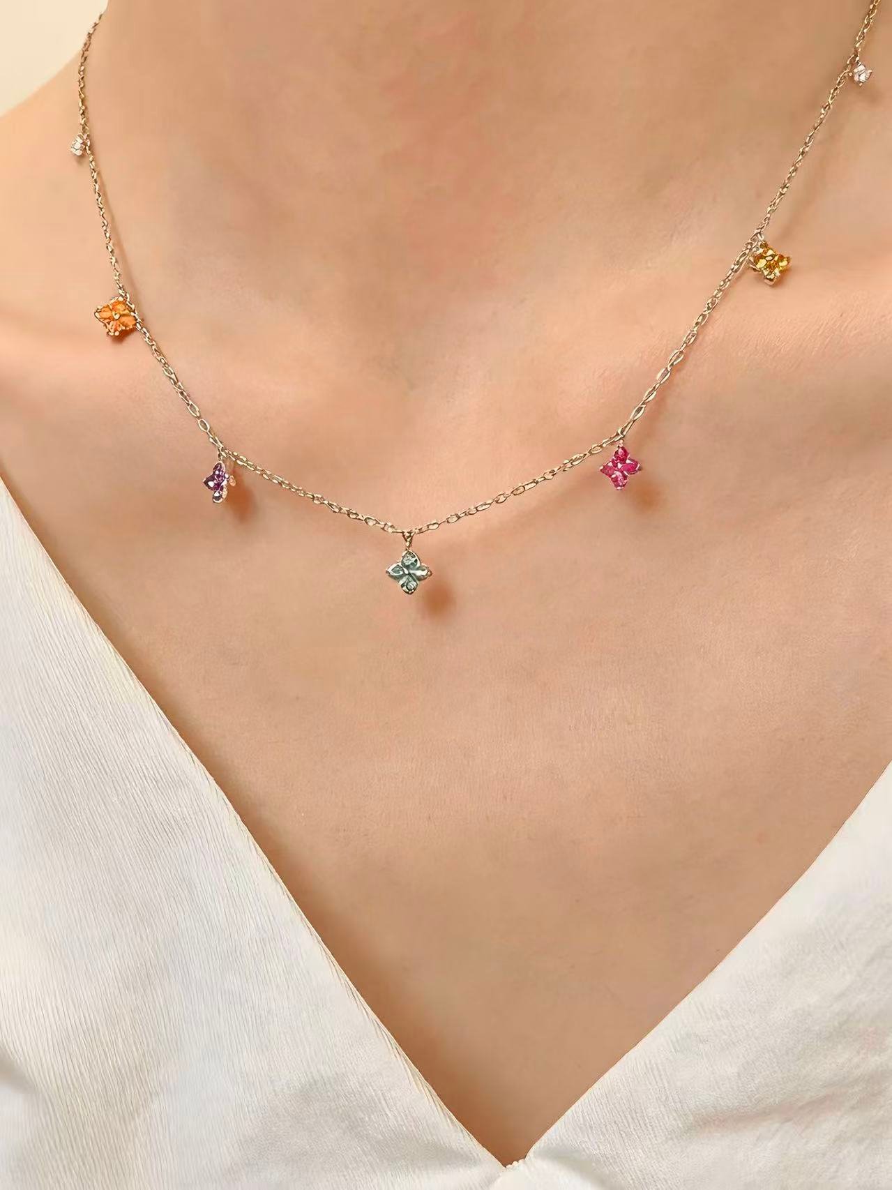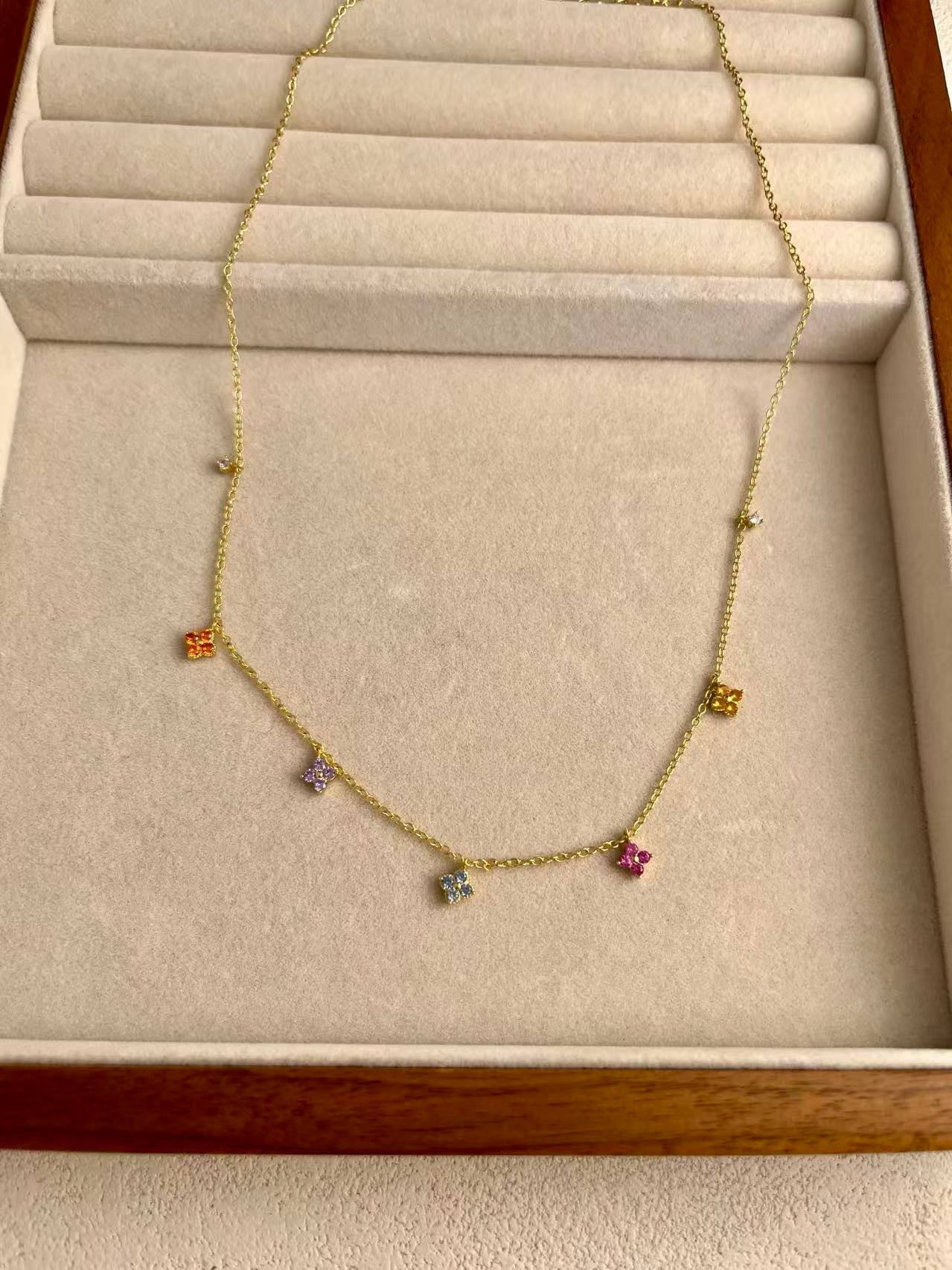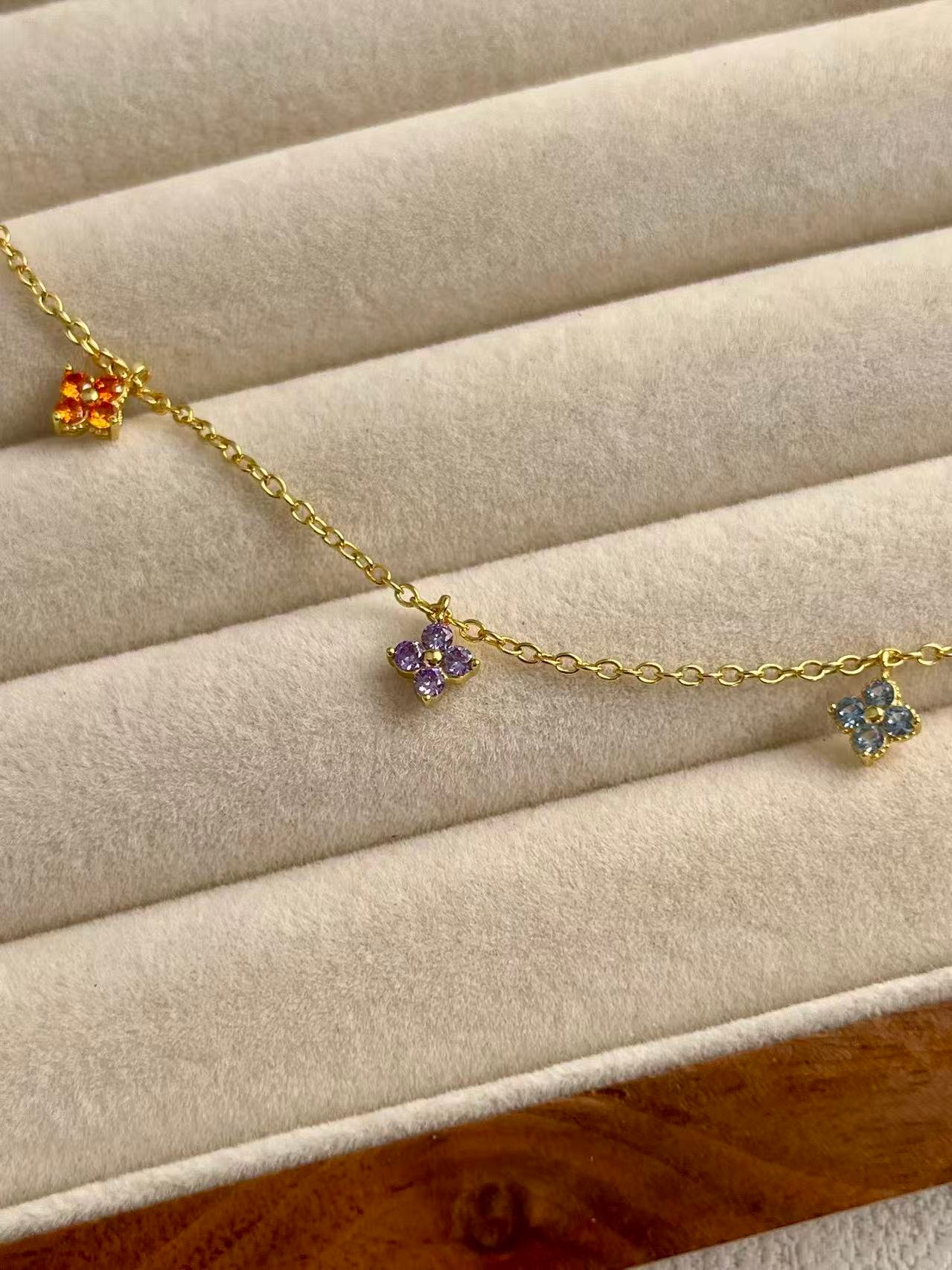 Inspired by the vibrancy of a spring garden, this silver choker features delicate cubic zirconia flowers in vibrant hues that symbolize joy and femininity. Its minimalist, multicolored design is intended to add a touch of handcrafted brilliance to any look, making it an essential piece of fine jewelry that celebrates natural beauty with an elegant gold finish.