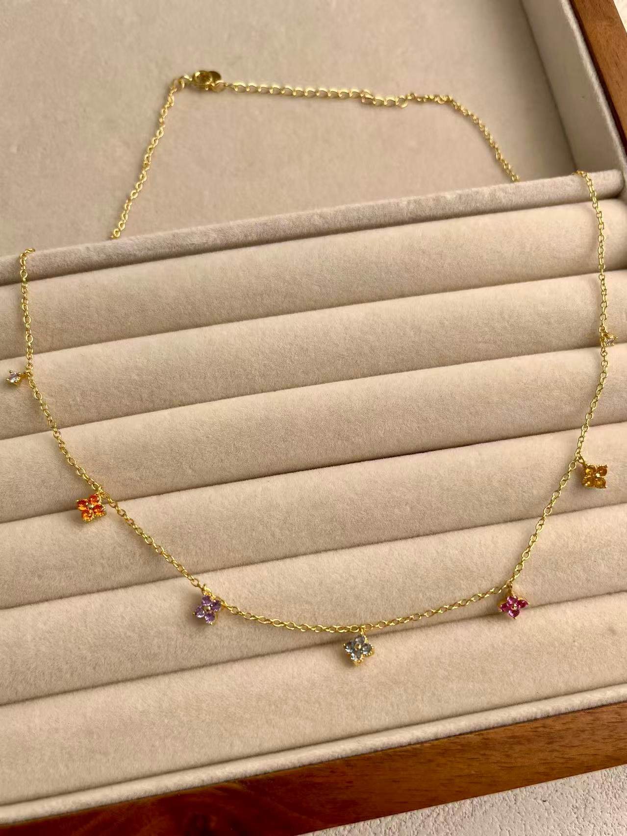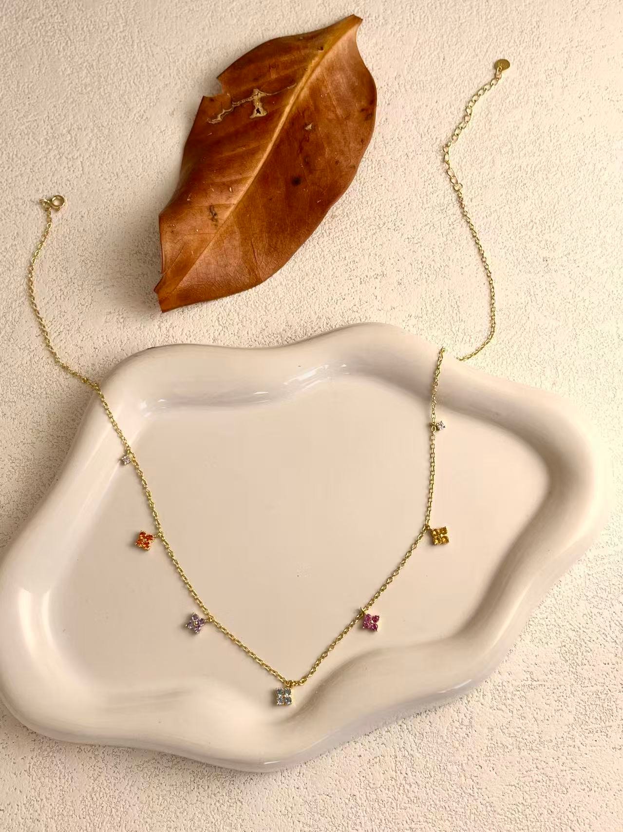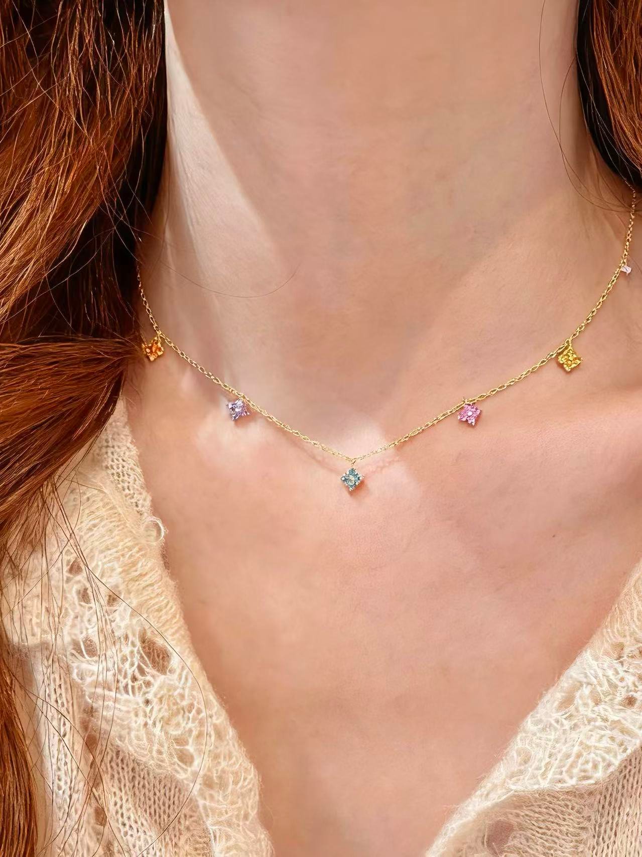 Inspired by the vibrancy of a spring garden, this silver choker features delicate cubic zirconia flowers in vibrant hues that symbolize joy and femininity. Its minimalist, multicolored design is intended to add a touch of handcrafted brilliance to any look, making it an essential piece of fine jewelry that celebrates natural beauty with an elegant gold finish.