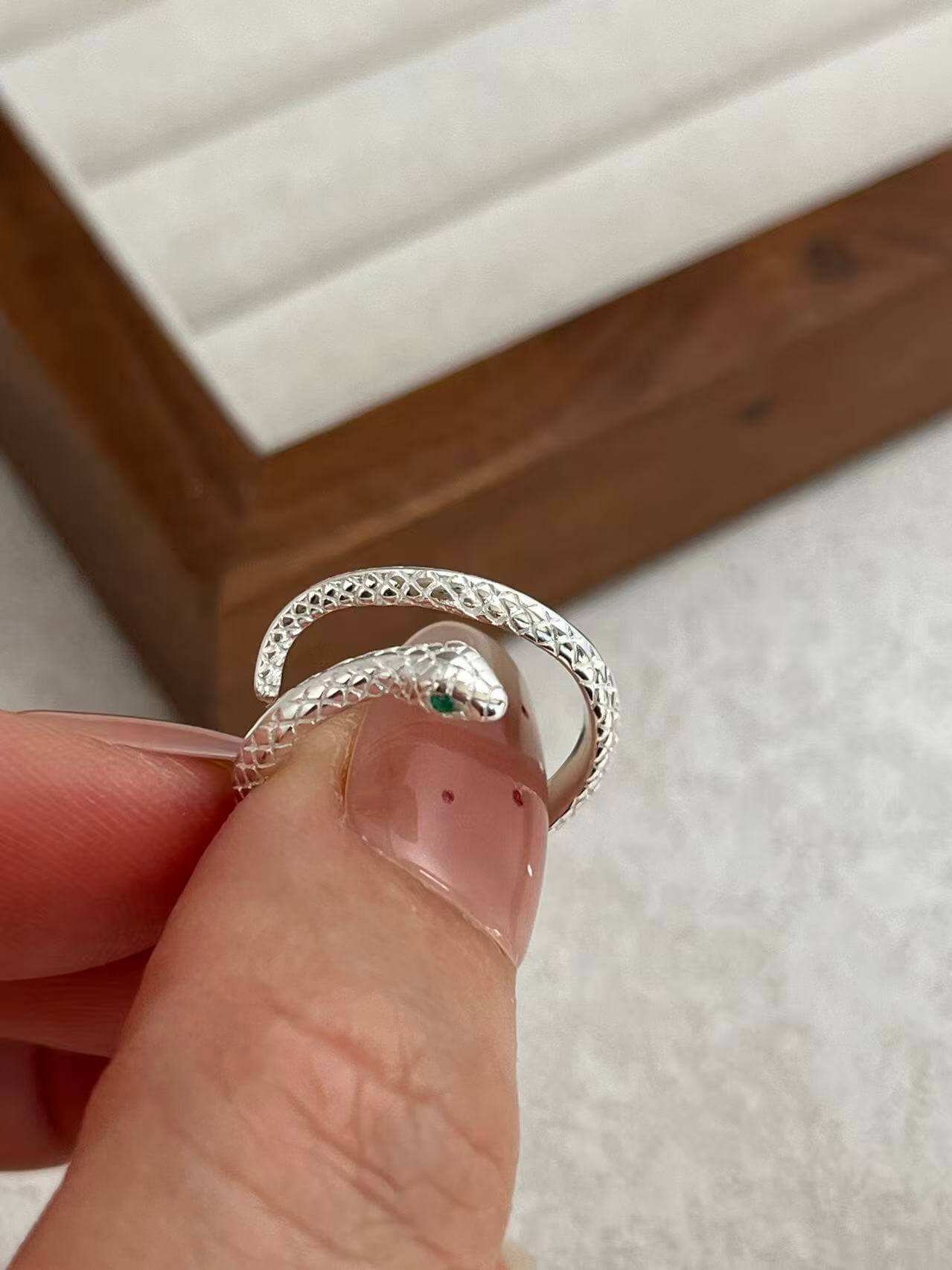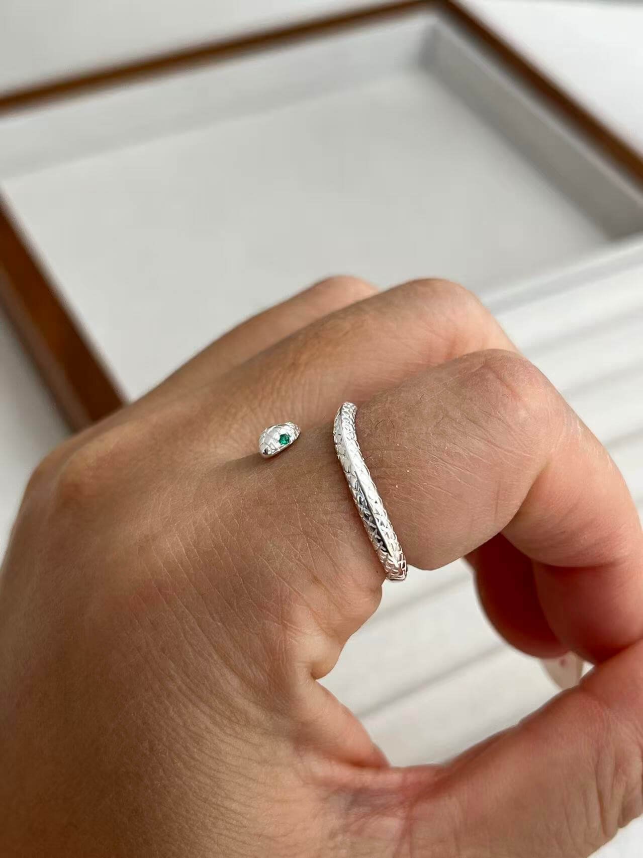 Esta pieza nace de la dualidad de la serpiente: un símbolo milenario de renovación, sabiduría y protección. No es solo una joya, sino un amuleto que se entrelaza en tu dedo, adaptándose a tu forma única.