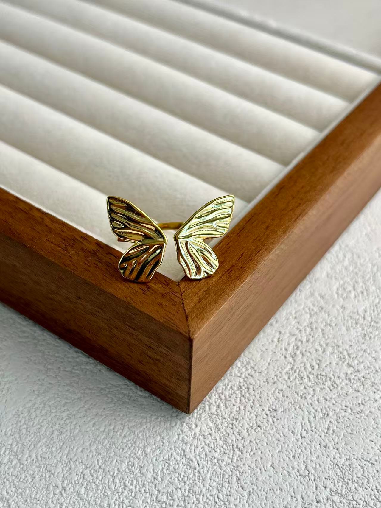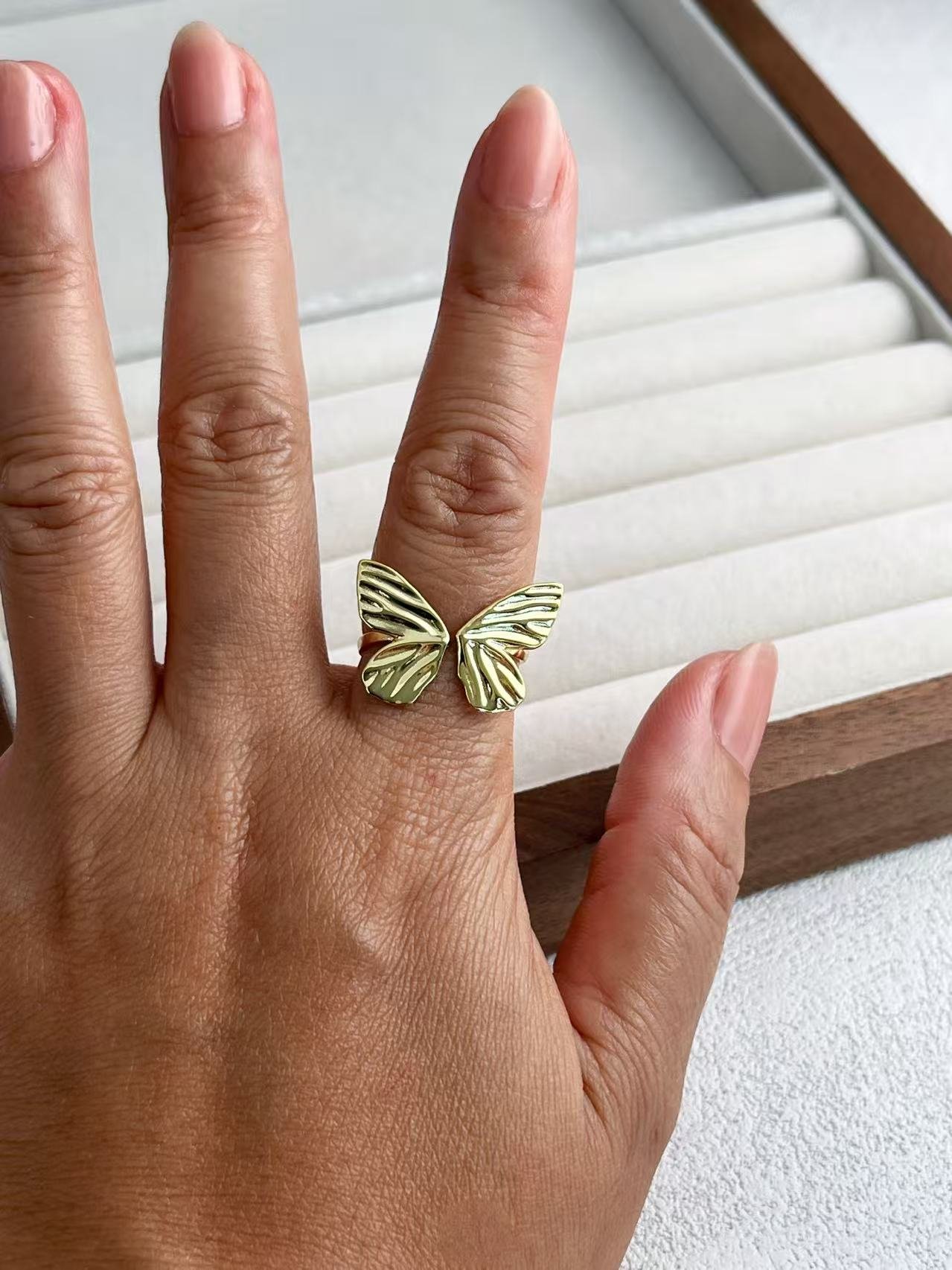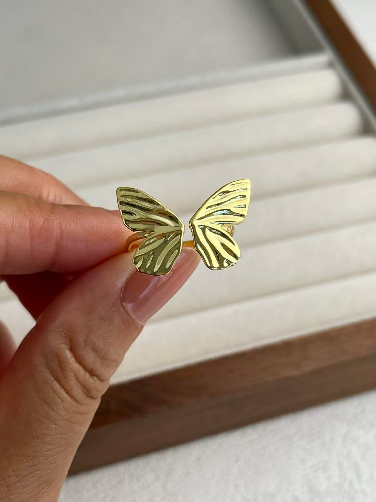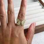 Este anillo está inspirado en la libertad y la ligereza del vuelo de una mariposa, reinterpretada a través de un prisma artístico y minimalista. Elaborado en plata de ley 925 con un acabado texturizado que evoca las delicadas nervaduras de las alas reales, su diseño abierto envuelve el dedo con una elegancia orgánica y moderna. Es una pieza pensada para simbolizar la evolución personal y la naturaleza vibrante, convirtiéndose en un amuleto de sofisticación que aporta un movimiento sutil y un brillo escultural a cada uno de tus gestos.