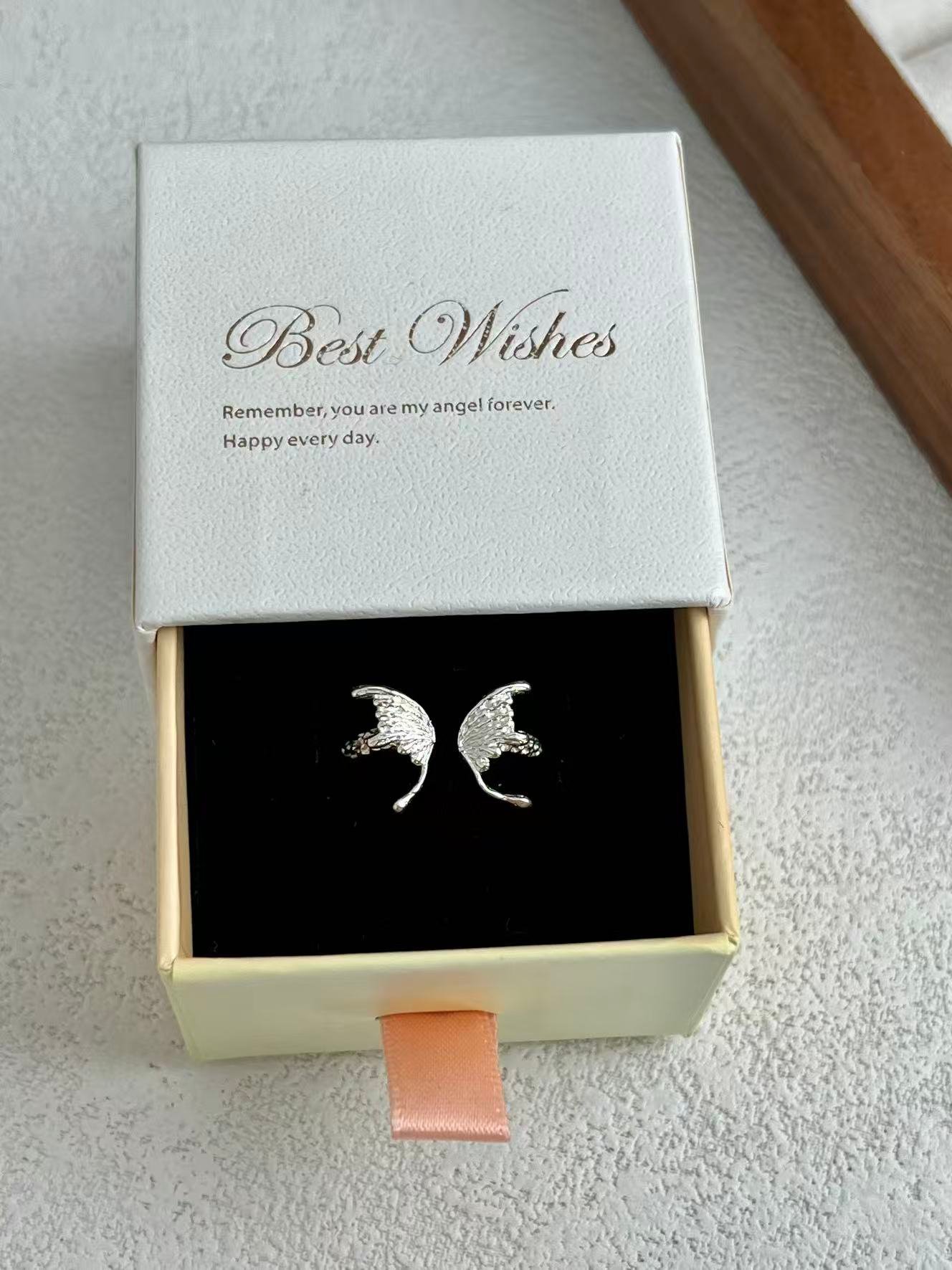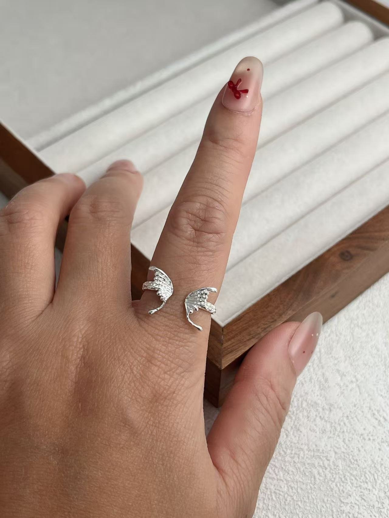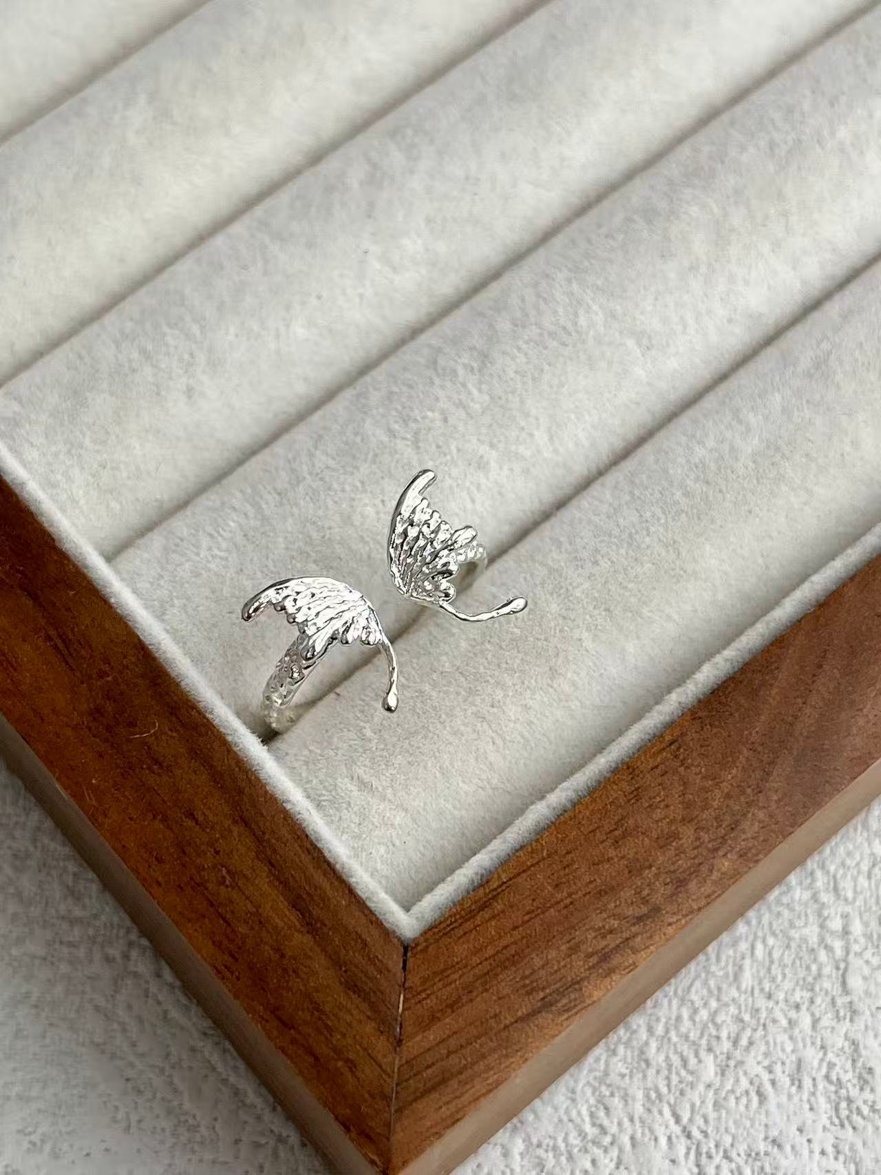 Inspirado en el concepto de «Libertad y Protección», este anillo abierto presenta dos alas delicadamente esculpidas con una textura detallada que captura la esencia del vuelo, envolviendo el dedo con un simbolismo espiritual y un estilo etéreo que se adapta perfectamente a cualquier medida.