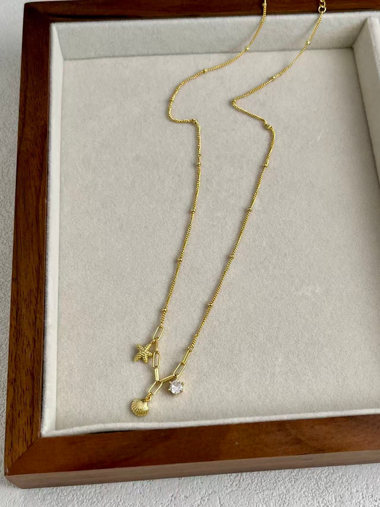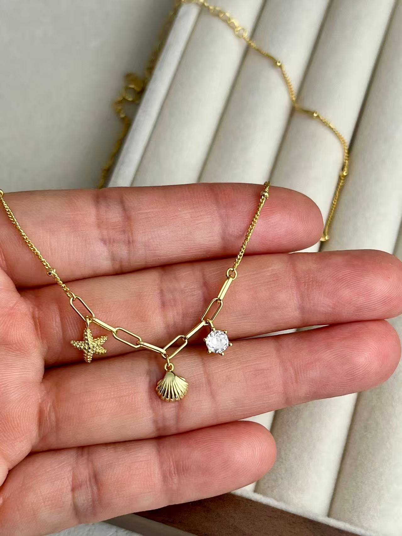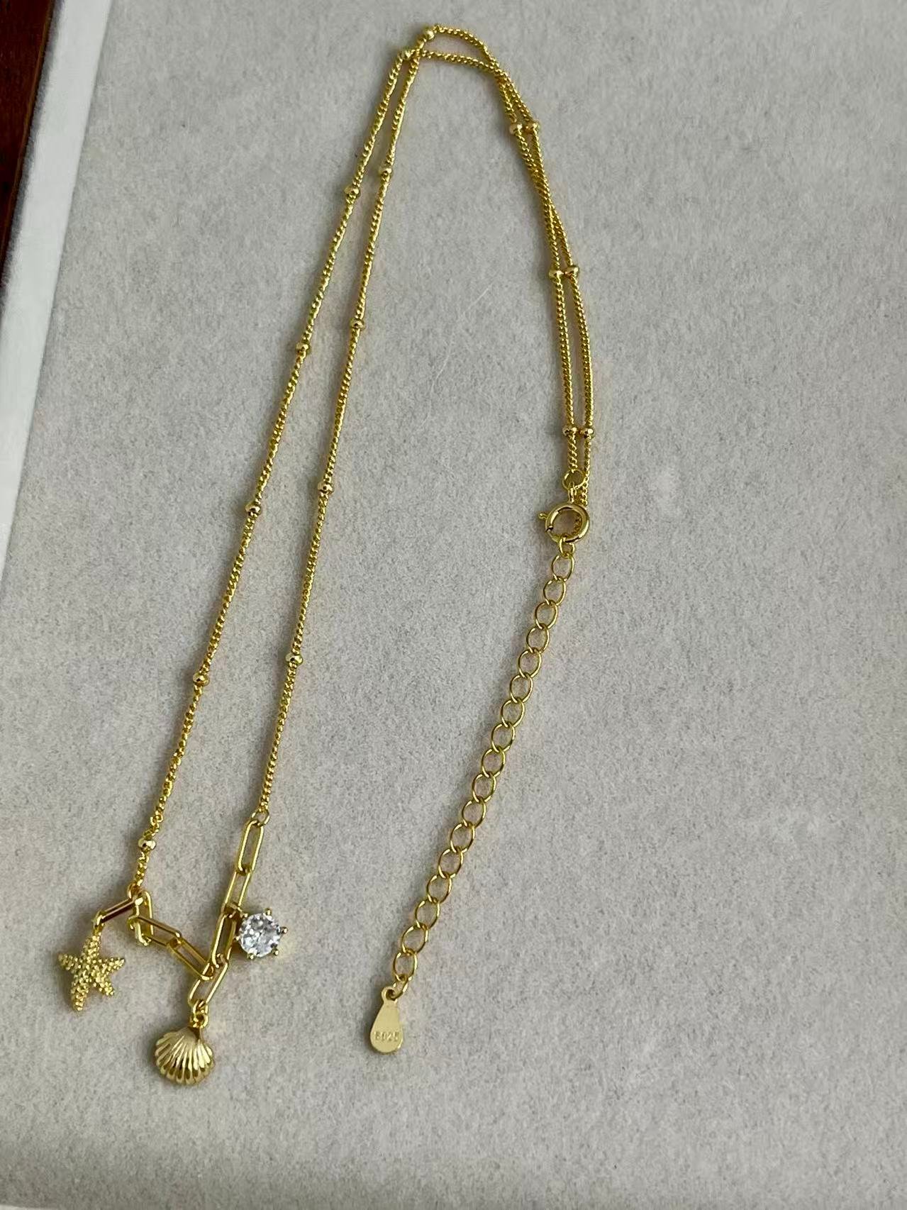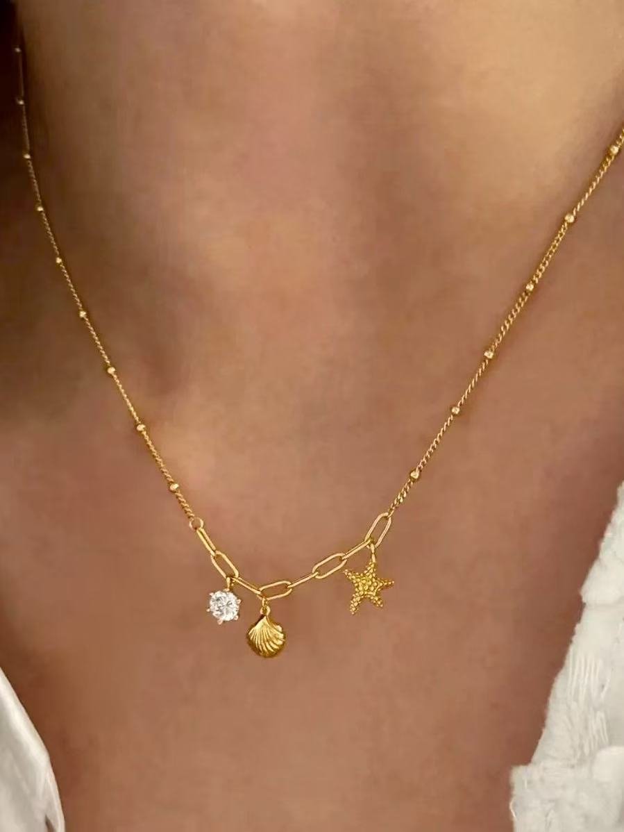 Este diseño celebra la magia de la costa mediante charms detallados de estrella de mar y concha, complementados por el brillo de una circonita de alta calidad. Forjada en plata de ley 925, la pieza captura la esencia de un verano eterno, convirtiéndose en un amuleto personal que une la naturaleza con una elegancia juguetona y moderna.