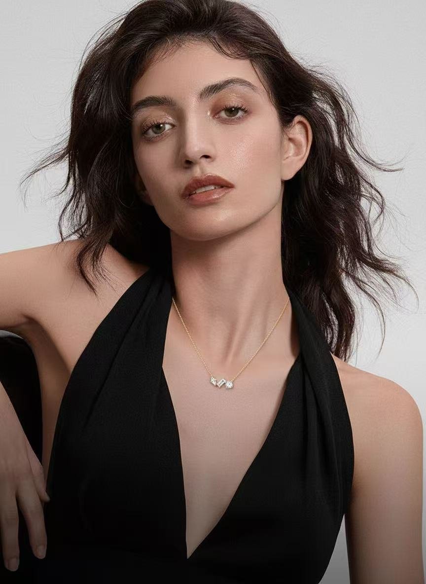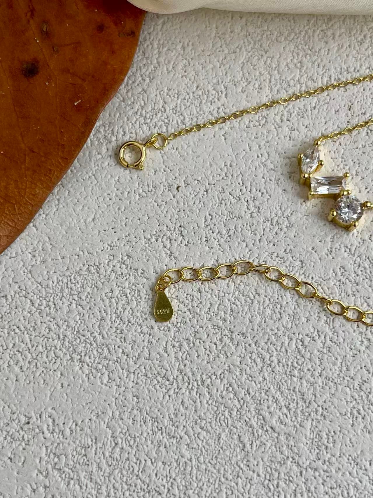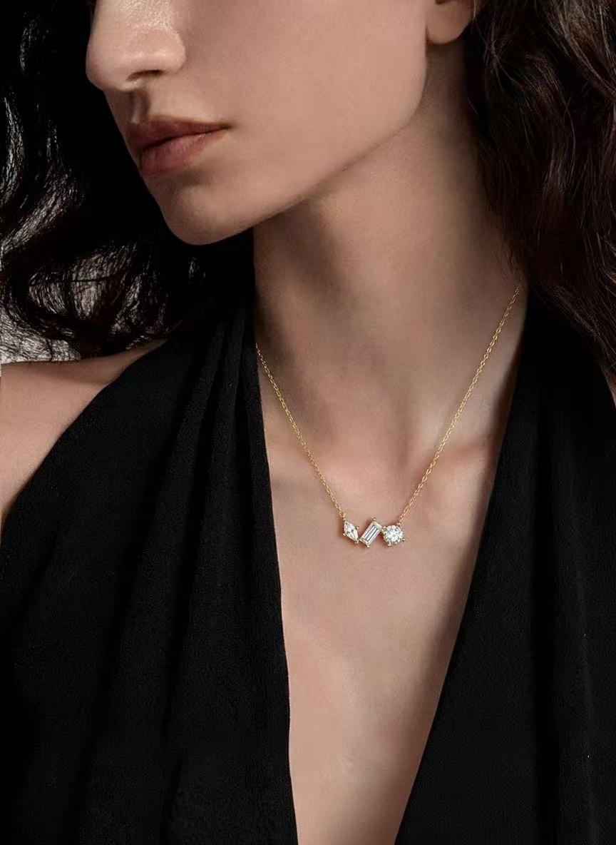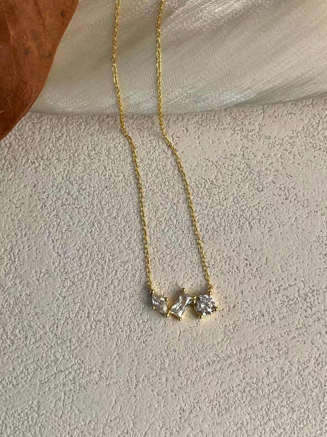Este diseño nace de la belleza de la asimetría equilibrada. Inspirado en la luz que se fragmenta a través de un prisma, este collar presenta un trío de cristales con cortes marquise, baguette y redondo, creando un juego de destellos único sobre la piel. Elaborada en Plata de Ley 925, es una pieza pensada para la mujer que busca una joya contemporánea y sofisticada que destaque por su originalidad geométrica, siendo el amuleto perfecto para iluminar el día a día con una elegancia moderna.
