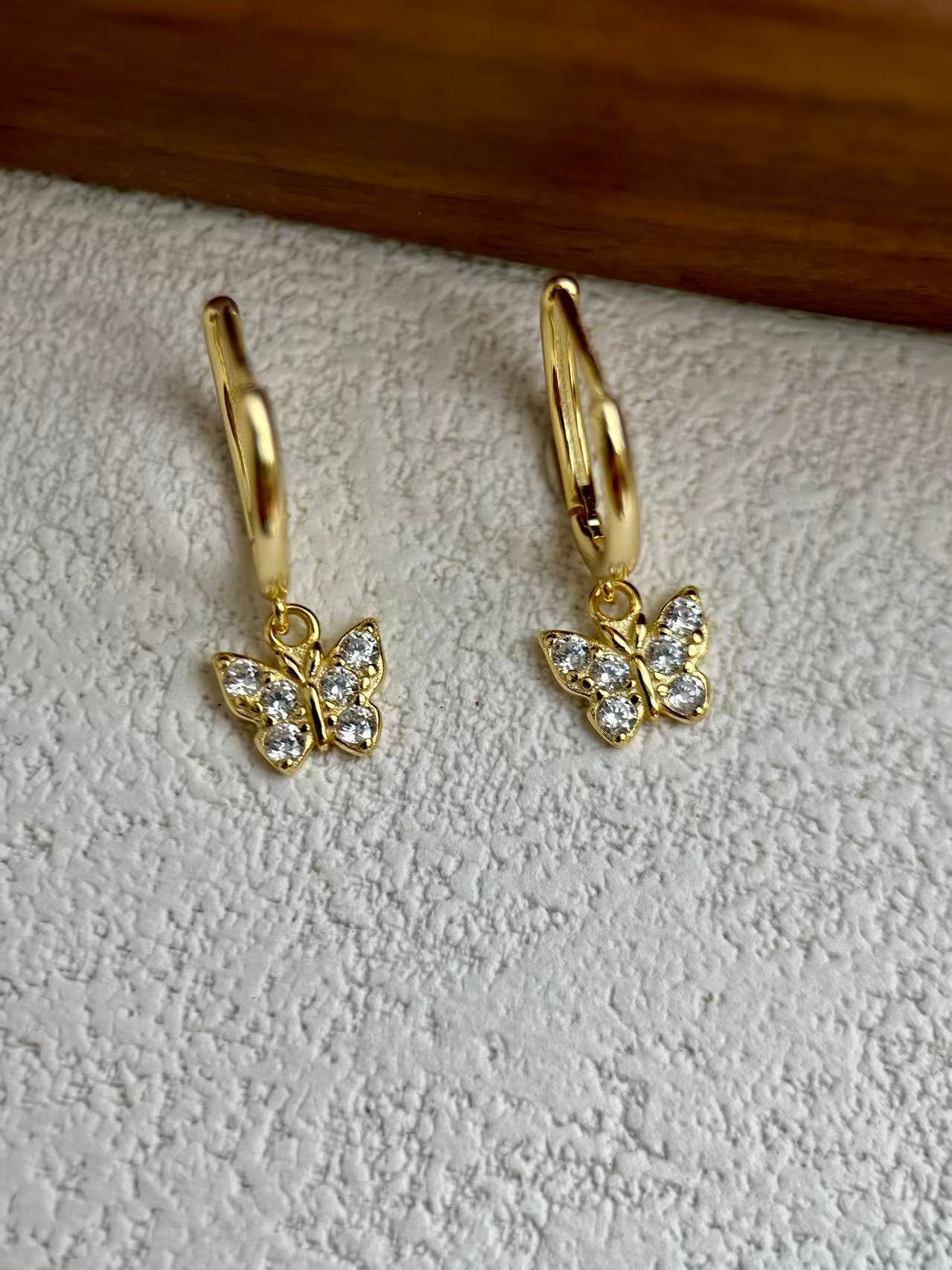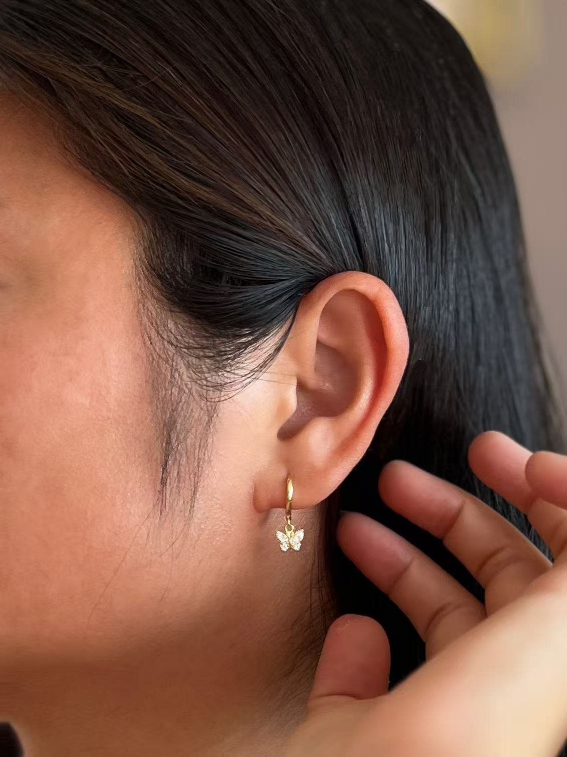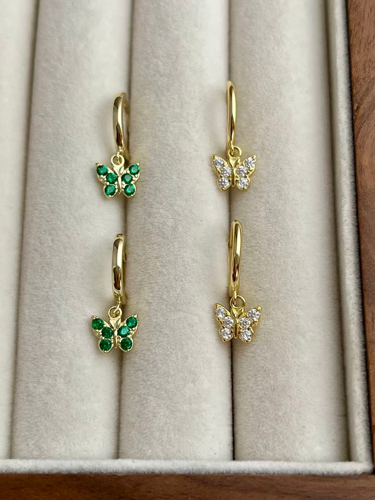 Estos pendientes están inspirados en la transformación y la libertad que simboliza la mariposa, capturando su delicadeza en plata de ley 925 con un baño de oro de 18K. El uso de circonitas en un intenso tono verde esmeralda evoca el renacer de la naturaleza y la frescura de los bosques profundos. Es una pieza diseñada para aportar un toque de color vibrante y movimiento a tu estilo, recordándote que cada pequeño cambio es una oportunidad para volar con elegancia y confianza.