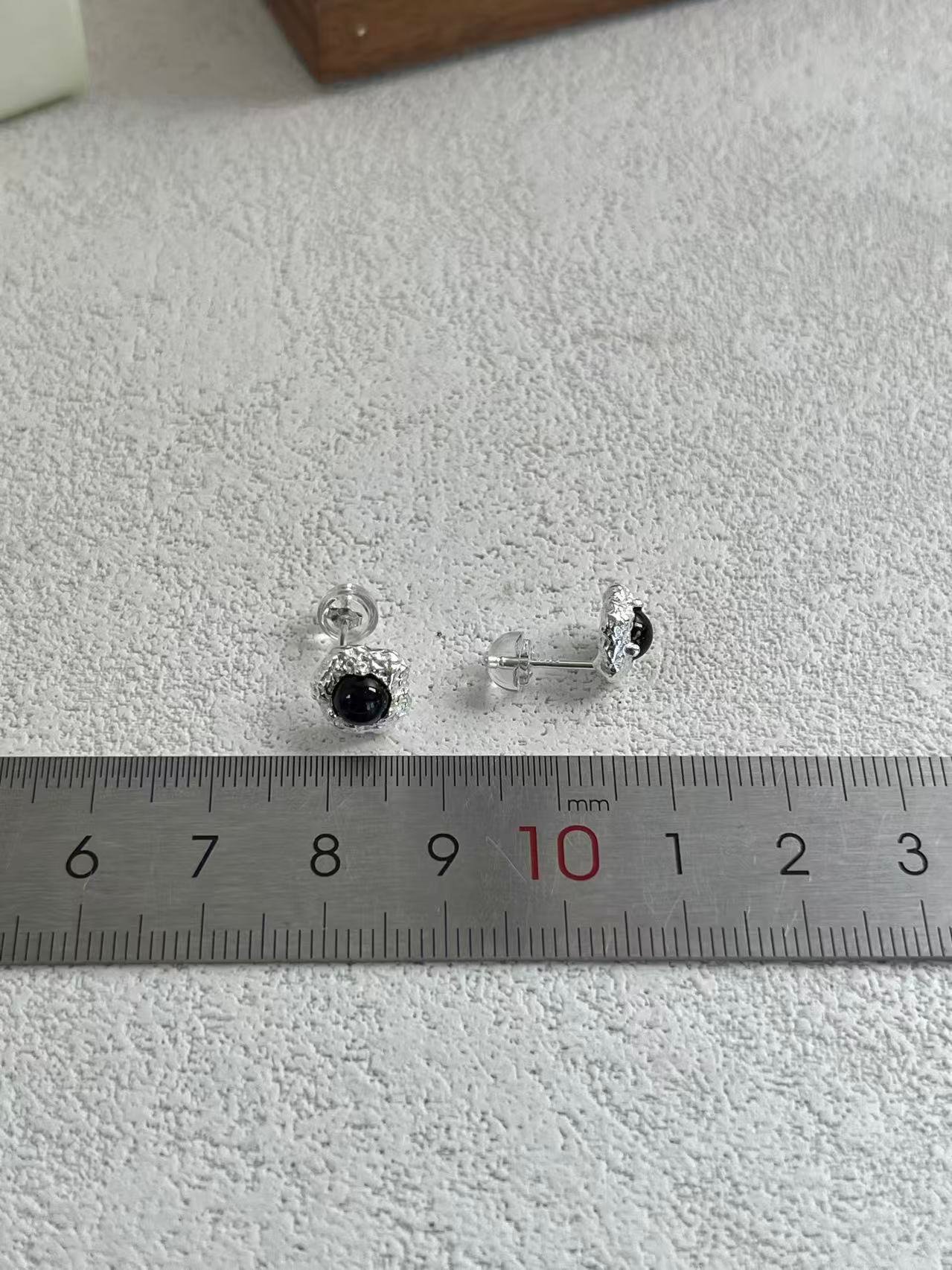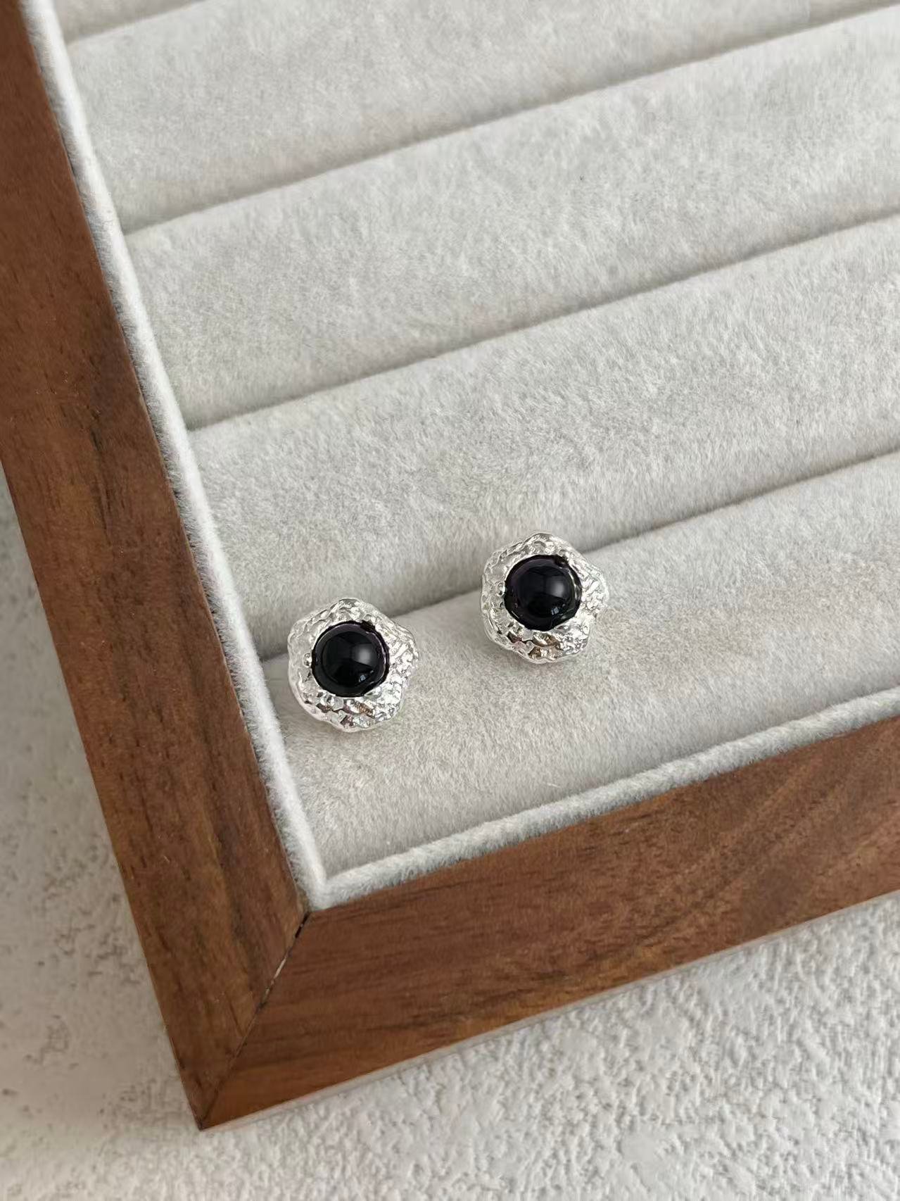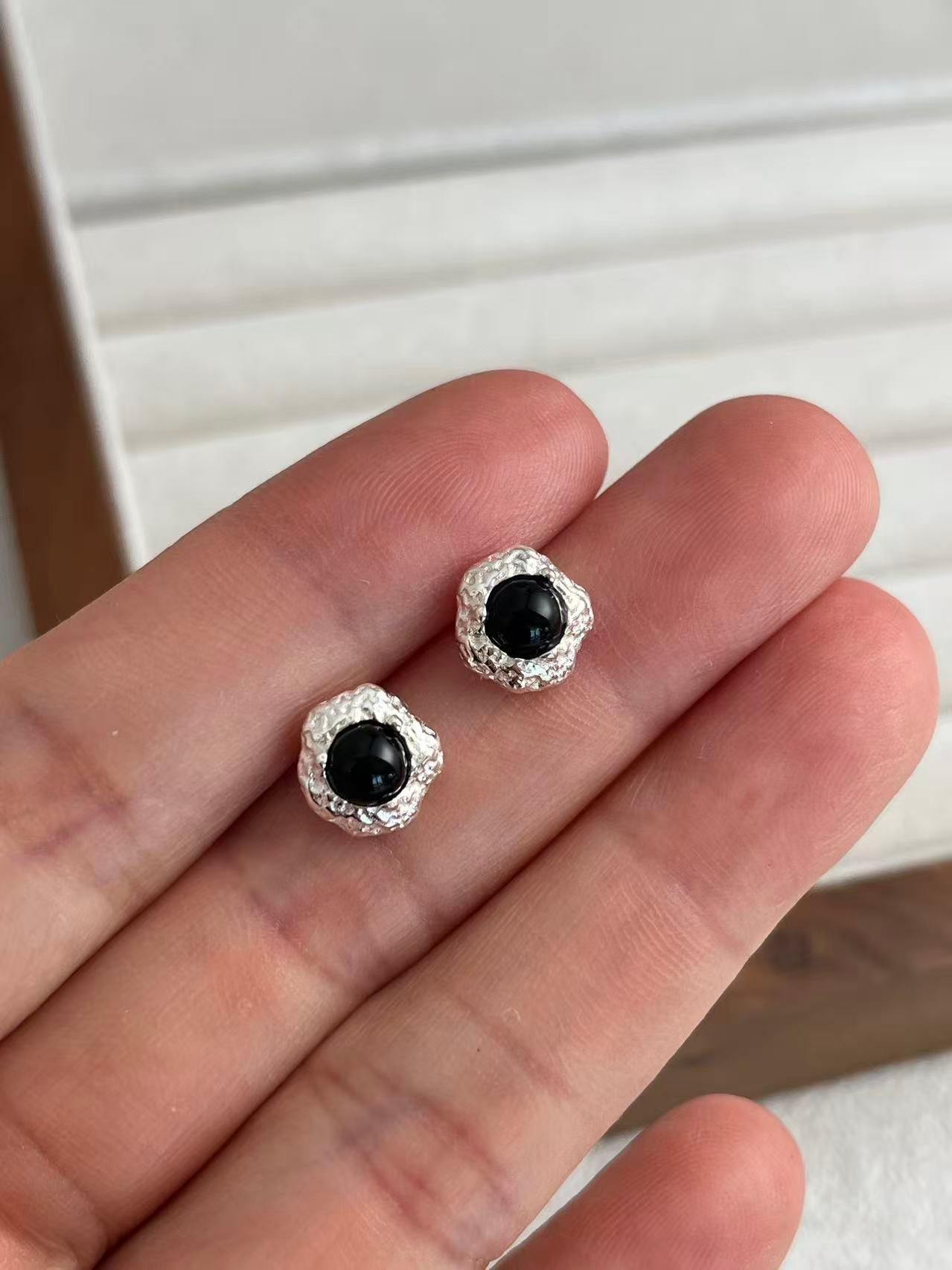 Pendientes de Plata con Ónix Negro y Textura Orgánica