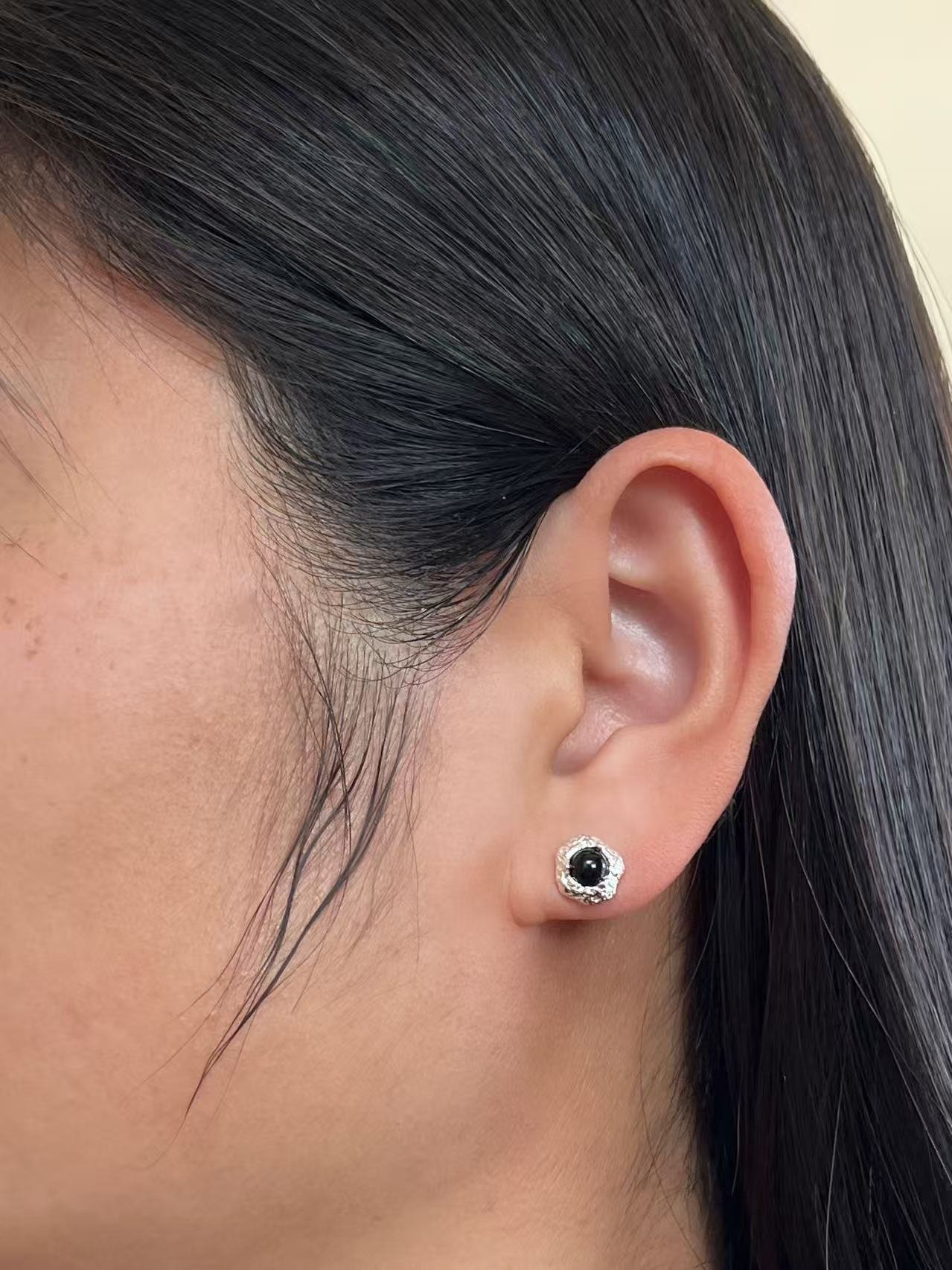 Esta pieza encuentra su esencia en el contraste entre la fuerza volcánica y la elegancia serena, combinando una gema de ónix negro pulido con una montura de plata de ley de textura orgánica y artesanal. El diseño busca capturar la dualidad de la naturaleza: la superficie irregular martillada evoca la tierra virgen, mientras que el núcleo oscuro simboliza la protección, la sofisticación y el equilibrio absoluto, creando un accesorio atemporal de estilo minimalista pero con carácter audaz.